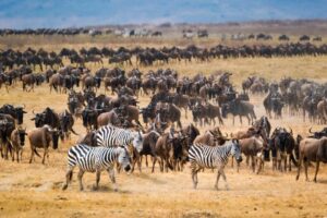 Witness nature’s ultimate spectacle! The Great Migration is an awe-inspiring journey where millions of wildebeest, zebras, and gazelles traverse the Serengeti and Maasai Mara in search of greener pastures. Adventure, drama, and wildlife encounters await every step of the way!